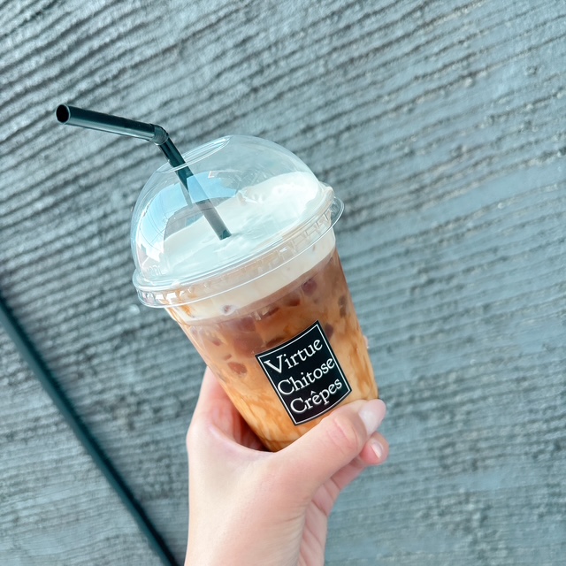 2025.09.25 ヴァーチュ 皆さん、こんにちは⊂⌒~⊃。Д。)⊃ きょうは、あいにくの雨でした。 最近だんだん秋に近づいてきたようで、朝・晩は冷え込むので こちらへお越しの際には暖かい恰好をしてきてくださいね。 さて、一昨日ホテル近くの過角のクレープ屋さんに行きました🐸 クレープは食べませんでしたが、ドリンクも興味深くてとっても美味しいです!! ↓黒糖ラテを飲みました💕甘くておいしかったです!! ホテル近くなので、当ホテルへご宿泊の際には皆さんも是非!!